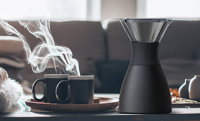 Asobu Pourover is a modern one-piece coffee brewer and server. With that in your kitchen, you will be able to prepare a perfect cup of pour-over coffee with little effort. Among its advantages, you can name an included stainless steel filter, a built-in insulated server and eye-catching design.