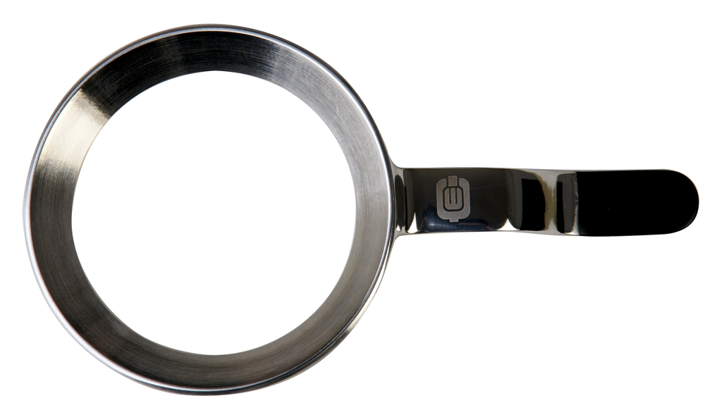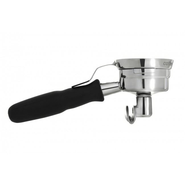 The Coffee Catcha acts as a funnel to stop the coffee beans from falling over the edge of the portafilter.