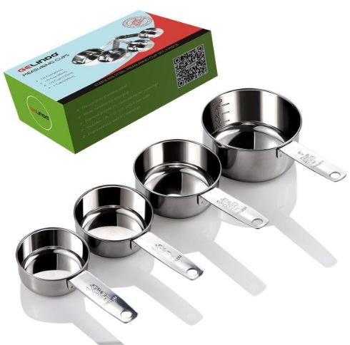 Gelindo Stainless Steel Measuring Cups - 4Pcs (60ML/80ML/125ML/250ML)- Food Grade Metal Measure Cup - Lifetime Diet Measuring-Cups with Engraved Measurements